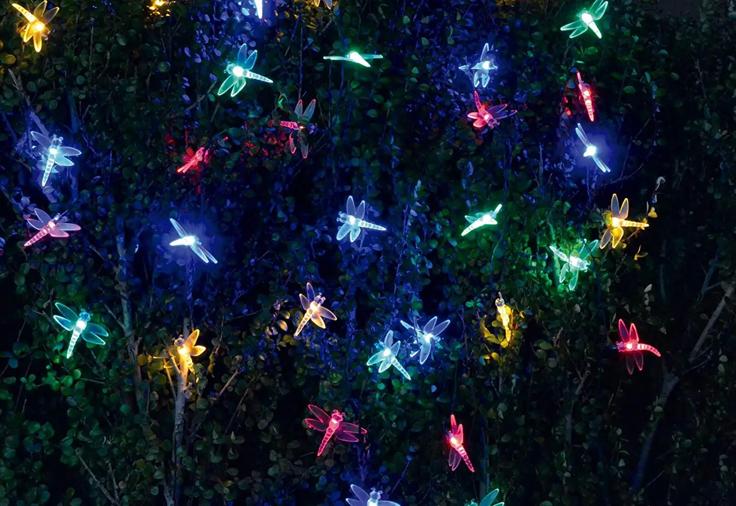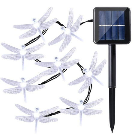This decorative solar light has a 208 foot string that features 20 color changing dragonfly shaped lights that can cause people to stop and stare at outdoor areas of your home. Gigalumi 2 pack solar strings lights 20 feet 30 led dragonfly solar fairy lights garden lights for outdoor home lawn wedding patio party and holiday decorations multi color.