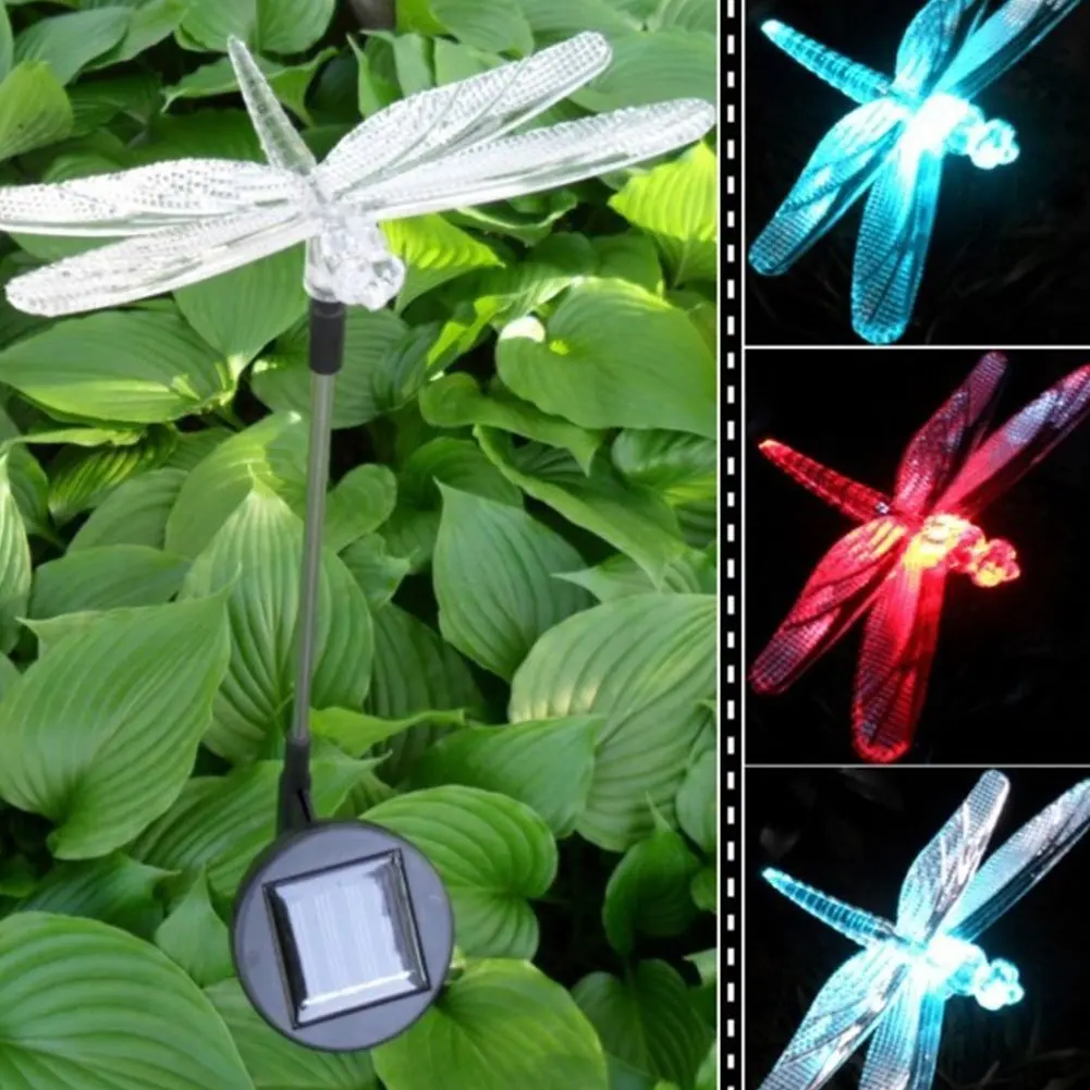 Outdoor solar lights dragonfly. Dragonfly acrylic solar light hanger wall decor. Color changing lights are an enchanting evening accent lights gently glow for up to 10 hours on a full charge set of 3 these luminous dragonflies will animate your garden with a rainbow of seven shifting colors. During the day the colorful designs on the dragonfly solar light make your outdoor space feel more vibrant and cheerful.