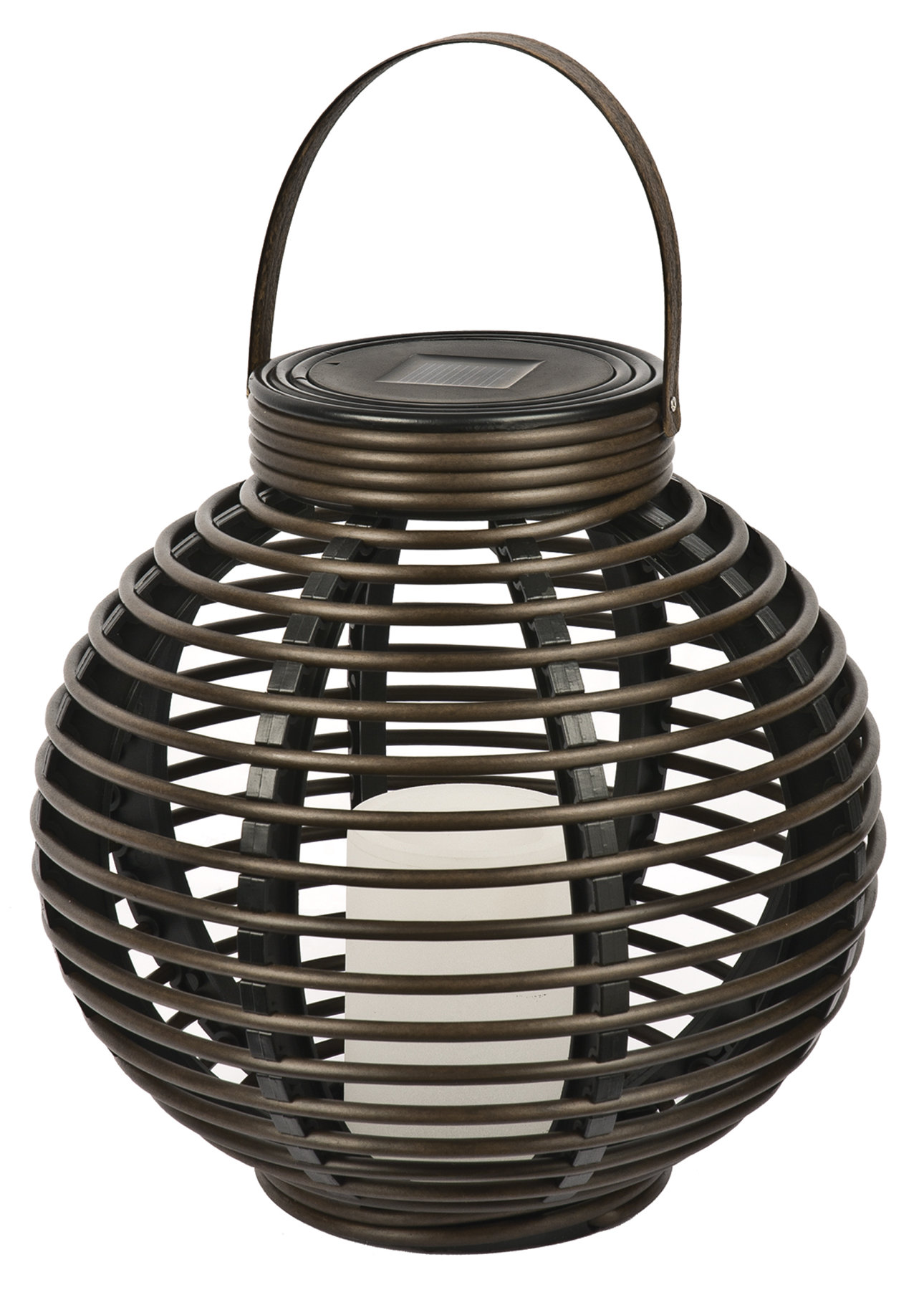 Solar flickering lantern. The heavy duty die cast aluminum construction is complemented by a rustic brown powder coated finish for real sophistication. Place in full sun to charge. Install it along a path on the included hook hang it on your porch or set it on a table.