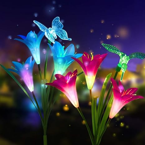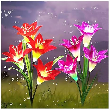 Skip to main content. 44 out of 5 stars 266. Wohome outdoor solar garden stake lights 2 pack solar flower lights with 8 lily flowermulti color changing led lily solar powered lights for patioyard decorationbigger flower and wider solar panel.