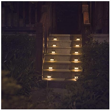 Solar lights for outdoor stairs. Step lights are not only a great way to provide light for outdoor steps and stairs but it can also add some night time charm to patio steps deck steps and outdoor staircases around your home. Beautybuyers outdoor waterproof solar power led light pathway path step stair wall garden 4 pack. Choose from complete stair lighting kits or unique step lighting designs to find the perfect addition to your space.